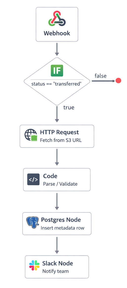 The huge advantage n8n holds over Zapier here? The Code node. You can run raw JavaScript to inspect data.filename, regex match it, branch based on the sender ID, or dynamically build an S3 presigned URL on the fly.